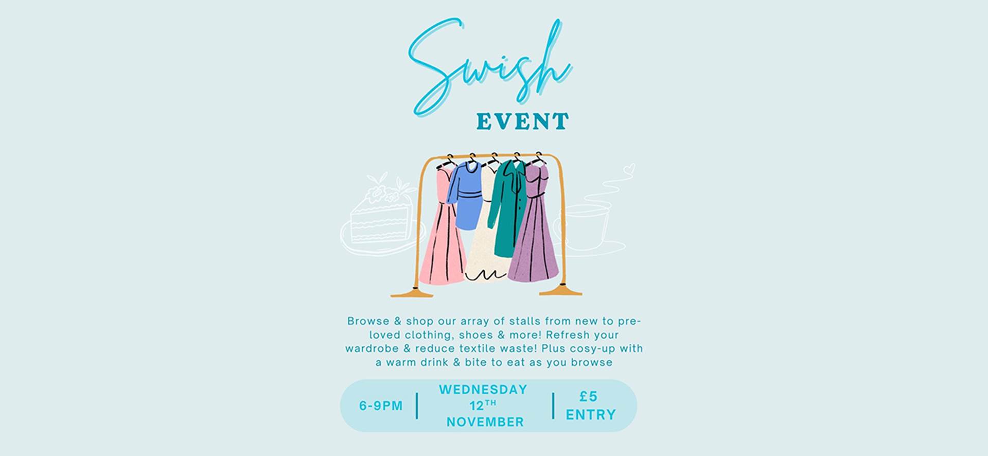 Join us for a stylish and eco-conscious evening at Blue Garden Café’s Swish Night — a unique sustainable fashion event in Clacton-on-Sea where you can shop, socialise, and support local charities.